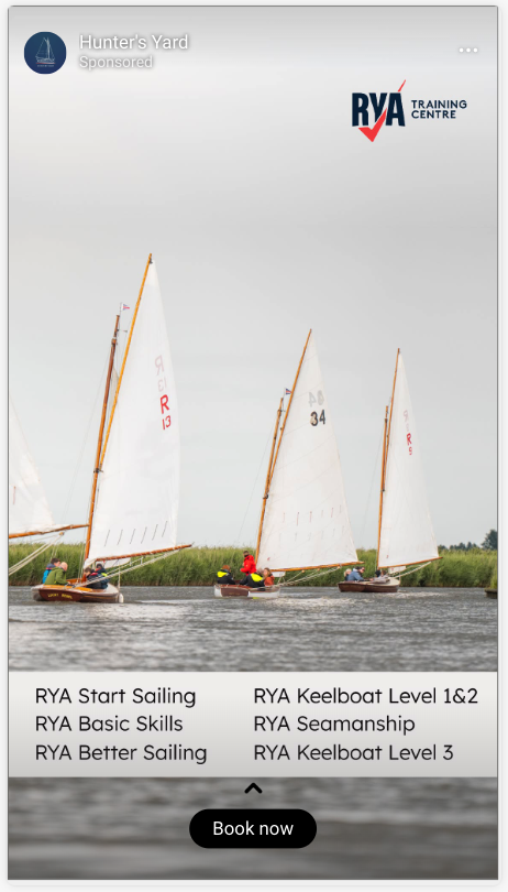 We regularly run paid social campaigns for Hunter’s throughout each season, promoting a variety of subjects from special pricing during certain months to RYA qualification courses and employment opportunities.